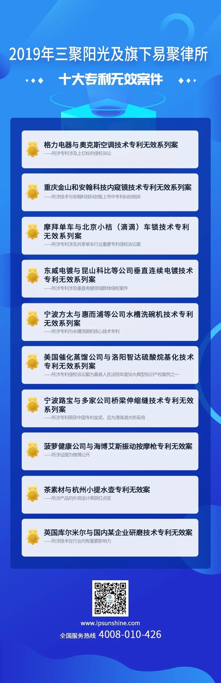 2019年三聚陽光及旗下易聚律所十大專利無效案件