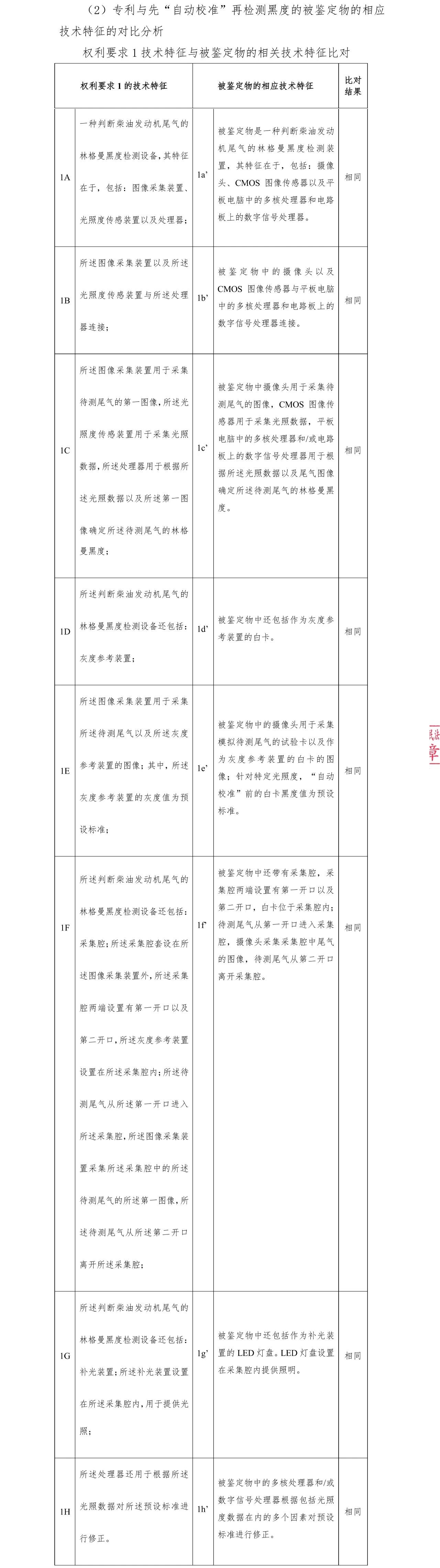 對此,庭審過程中各方都選擇了國家工業(yè)信息安全發(fā)展研究中心作為鑒定機(jī)構(gòu),對被告火眼公司的相關(guān)產(chǎn)品進(jìn)行鑒定。下圖為鑒定機(jī)構(gòu)出具的本專利權(quán)利要求1技術(shù)特征與被鑒定物的相關(guān)技術(shù)特征比對的一部分結(jié)果,從中可以看出所有比對項(xiàng)的技術(shù)特征都相同。
