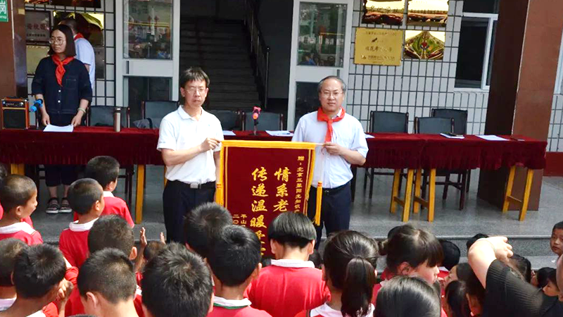 在捐贈(zèng)儀式上,校長(zhǎng)任宗波表示,這次愛(ài)心捐贈(zèng)活動(dòng),進(jìn)一步改善了學(xué)校的教學(xué)硬件條件與教師的生活條件,全校師生感受到人間的大愛(ài)和社會(huì)的溫暖,會(huì)坦然面對(duì)困境,勇敢前行,自立自強(qiáng)自尊自愛(ài),用出色的工作和學(xué)習(xí)來(lái)匯報(bào)社會(huì)的關(guān)愛(ài)。參與單位也逐一發(fā)言,鼓勵(lì)學(xué)生們努力學(xué)習(xí),練好本領(lǐng),努力成為對(duì)國(guó)家對(duì)社會(huì)有所貢獻(xiàn)的人才,願(yuàn)為學(xué)校的後續(xù)教學(xué)工作提供一切力所能及的幫助與支持。隨後,河北省高新技術(shù)企業(yè)協(xié)會(huì)、河北省科技企業(yè)孵化協(xié)會(huì)、北京三聚陽(yáng)光知識(shí)產(chǎn)權(quán)代理有限公司、河北日星律師事務(wù)所分別向西柏坡希望小學(xué)捐贈(zèng)了師生生活和學(xué)習(xí)中亟需的空調(diào)和計(jì)算機(jī)等設(shè)備。少先隊(duì)員代表為捐贈(zèng)單位領(lǐng)導(dǎo)佩戴了鮮艷的紅領(lǐng)巾。副校長(zhǎng)陳明龍代表學(xué)校向捐贈(zèng)單位敬獻(xiàn)了「?jìng)鬟f溫暖愛(ài)心,情系老區(qū)教育」的錦旗,並合影留念。