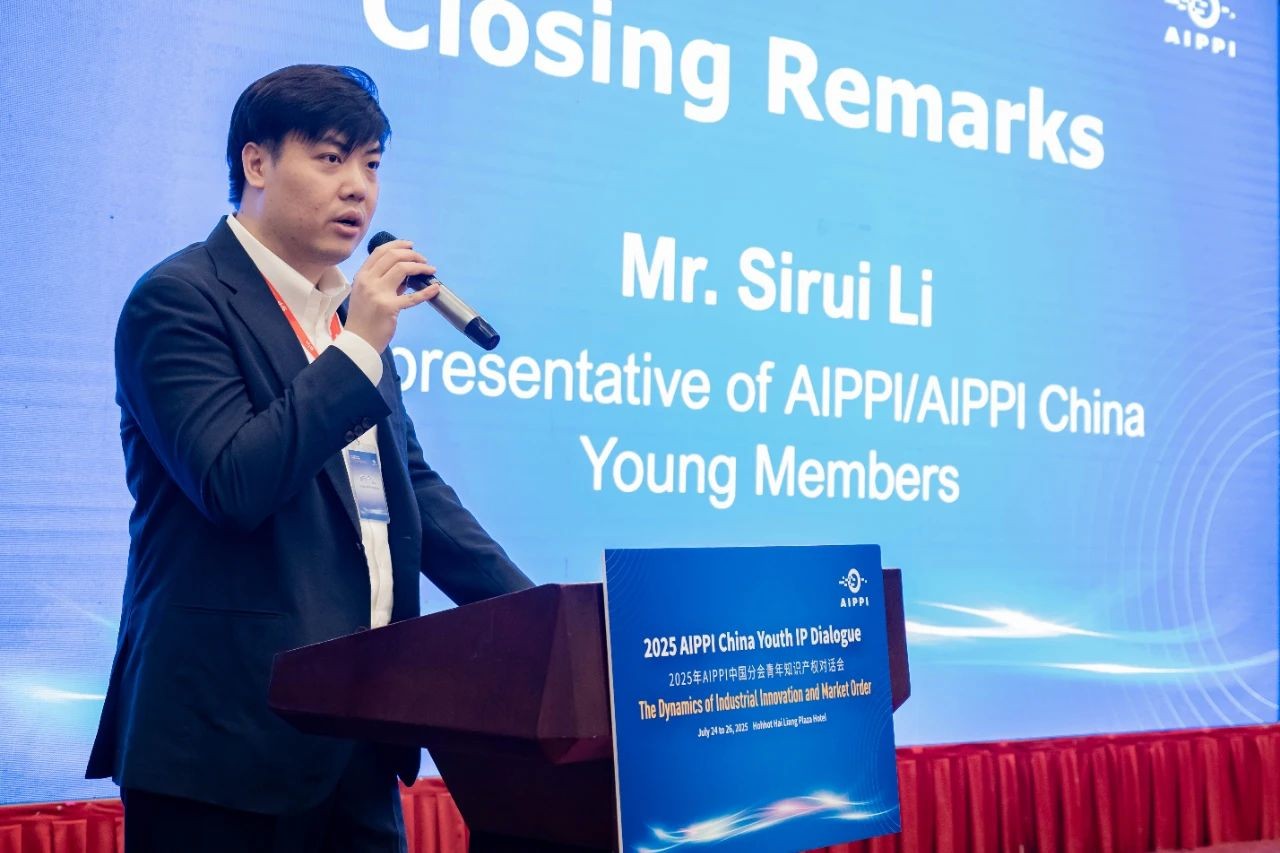 近日,2025年AIPPI中國分會(huì)青年知識(shí)產(chǎn)權(quán)對話會(huì)圓滿落幕。三聚陽光涉外代理師、AIPPI總會(huì)青年委員會(huì)委員李斯銳受邀在閉幕式上發(fā)表英文演講。