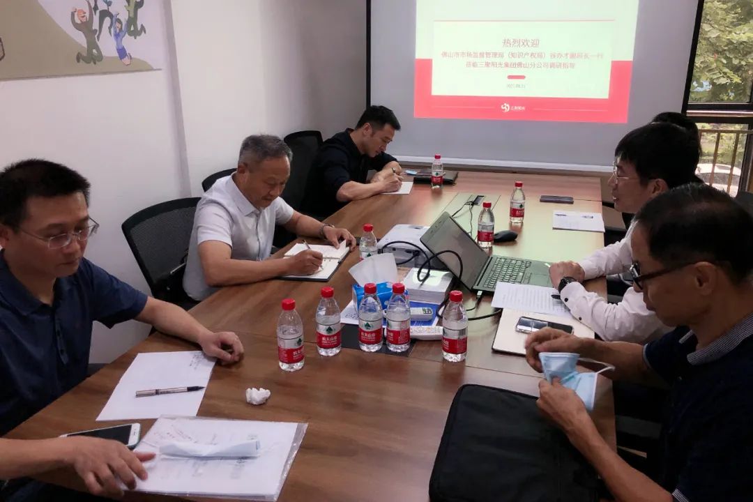8月11日上午,佛山市市場監(jiān)督管理局(知識產(chǎn)權(quán)局)副局長谷辦才及知識產(chǎn)權(quán)促進(jìn)科科長賴志軍、潘科堯一行蒞臨三聚陽光佛山分公司調(diào)研并指導(dǎo)工作,認(rèn)真聽取了佛山分公司現(xiàn)階段工作開展情況工作匯報。