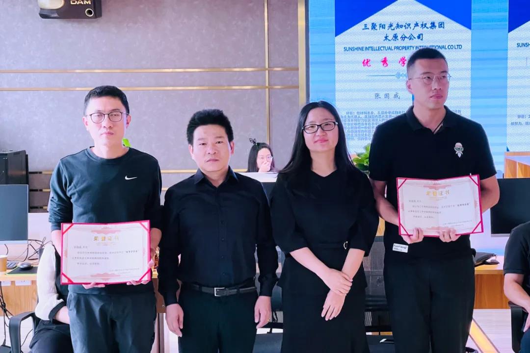 新契機(jī),新起點(diǎn),新發(fā)展!9月17日上午,三聚陽(yáng)光知識(shí)產(chǎn)權(quán)集團(tuán)董事長(zhǎng)張杰、總裁張建綱、副總裁李敏等集團(tuán)領(lǐng)導(dǎo)蒞臨集團(tuán)太原分公司考察調(diào)研,聽取了太原分公司負(fù)責(zé)人關(guān)于公司運(yùn)營(yíng)、培訓(xùn)、布局等情況及工作打算的專題匯報(bào),并對(duì)太原分公司下一步的重點(diǎn)工作給出了具體建議。當(dāng)天,集團(tuán)領(lǐng)導(dǎo)們還參加了太原分公司首次知識(shí)產(chǎn)權(quán)代理師培訓(xùn)的結(jié)業(yè)儀式,為優(yōu)秀學(xué)員頒發(fā)了榮譽(yù)證書。