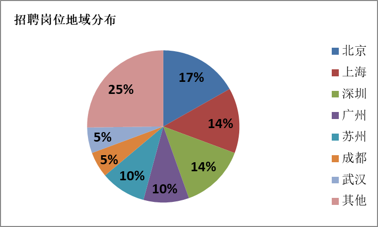 從圖3中的招聘崗位地域來看,北上深廣及蘇州、成都、武漢依次排在前列,分別占據(jù)了招聘量的16%、14%、14%、10%、10%、5%、5%,專利分析師的招聘單位更多的還是專利代理機構,同時專利分析師的招聘崗位地域分布情況與我國大型專利代理所的地域分布情況相吻合,調(diào)研實際情況也同樣表明,專利分析是項專業(yè)性比較強的工作,一些綜合實力雄厚的專利代理機構才能擔此重任。