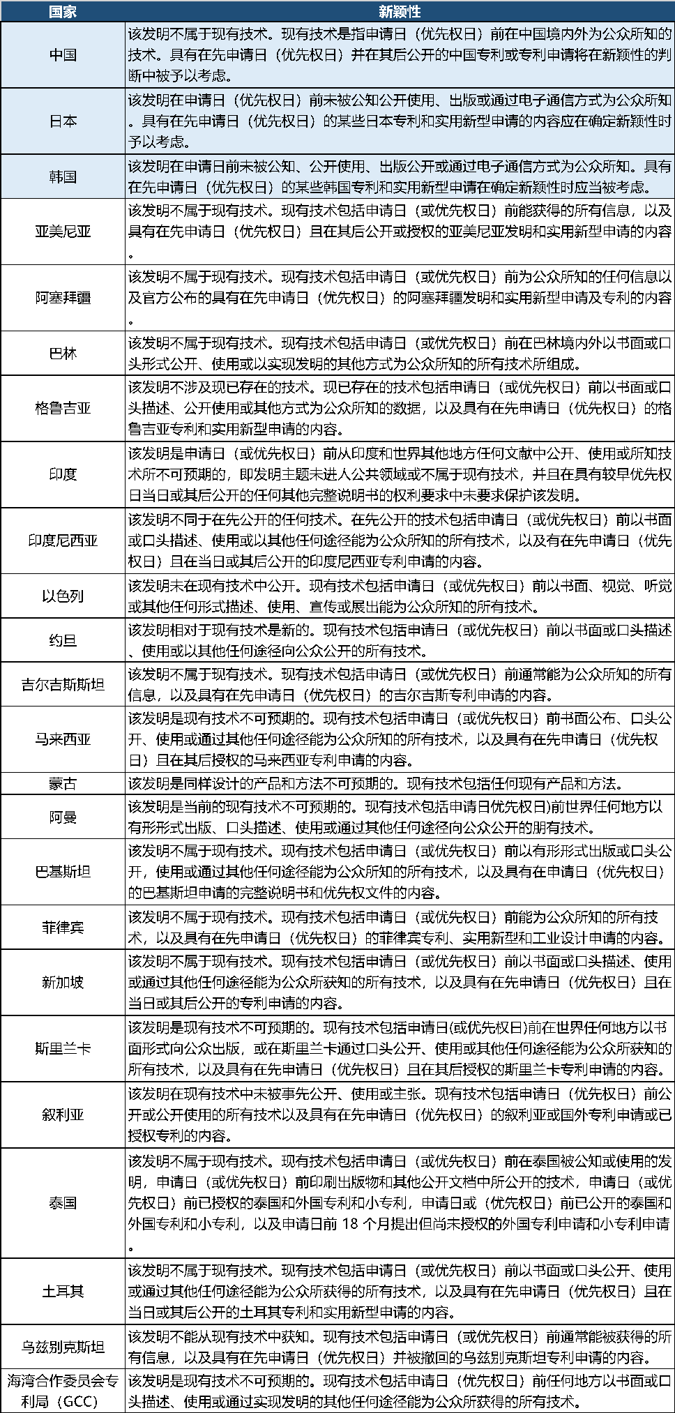 附:各國對“新穎性”的定義(亞洲篇)