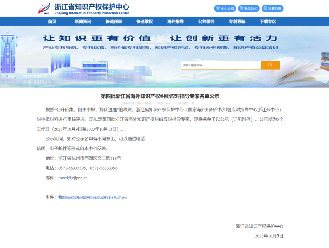 高東輝副總裁、向長(zhǎng)松經(jīng)理入選浙江省海外知識(shí)產(chǎn)權(quán)糾紛應(yīng)對(duì)指導(dǎo)專家